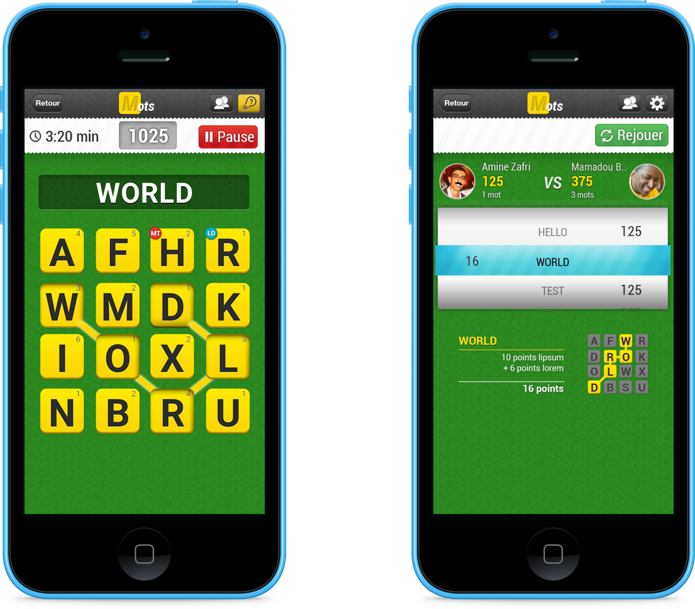 Des Mots (Now Boggler) is an iOS multiplayer Boggle game.