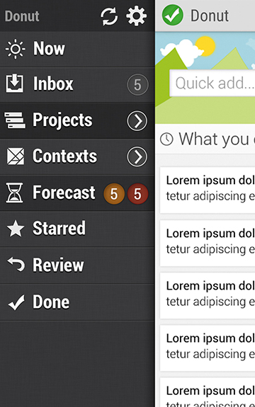 Donut is a Web and Android app inspired by OmniFocus, that helps people collect and organize their tasks.