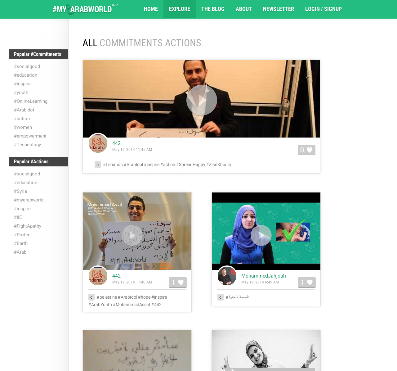 #MyArabWorld is a small social network, where people can post their commitments and actions to create social change in the region. The process of posting a commitment/action had to be the easiest possible for the users while trying to delight them, so the majority of the work was focused on the posting part.