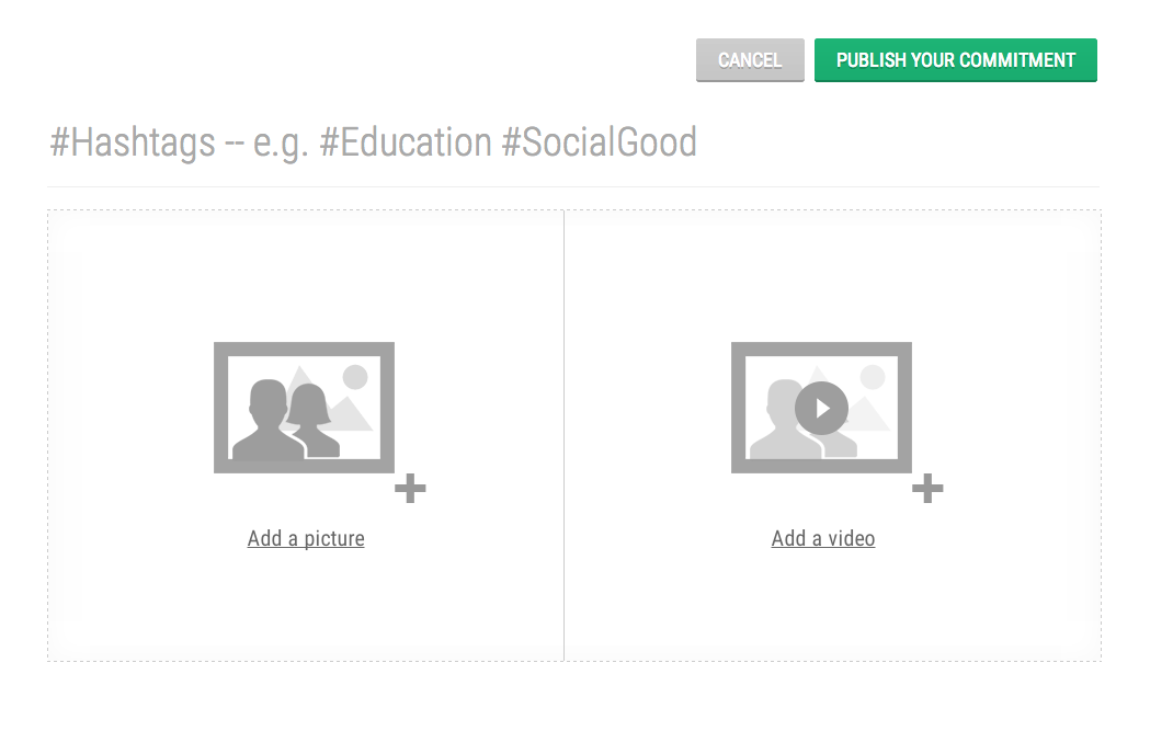 Since every commitment/action has Hashtags as a “title”, the field automatically transforms any text to a hashtag, making it easier for people not used to them :