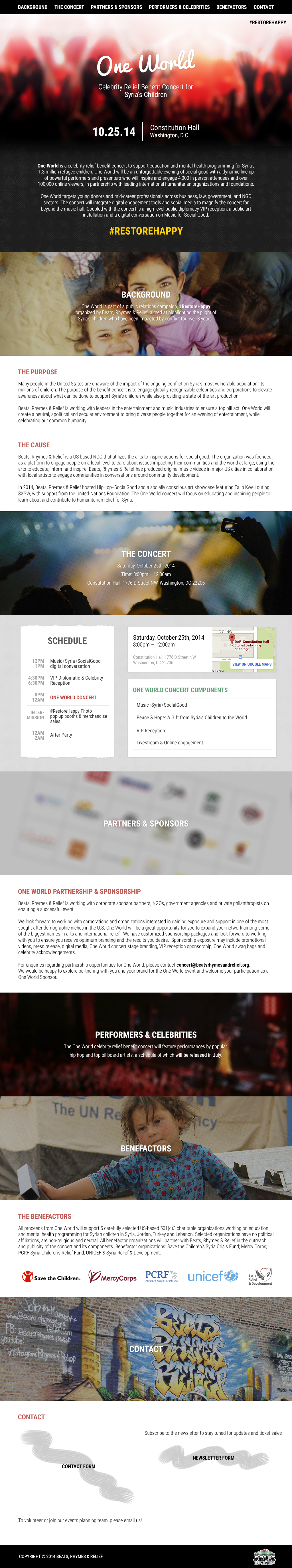 One World Syria is is a celebrity relief benefit concert to support education and mental health programming for Syria’s 1.3 million refugee children. The event will be held in Winter 2015.